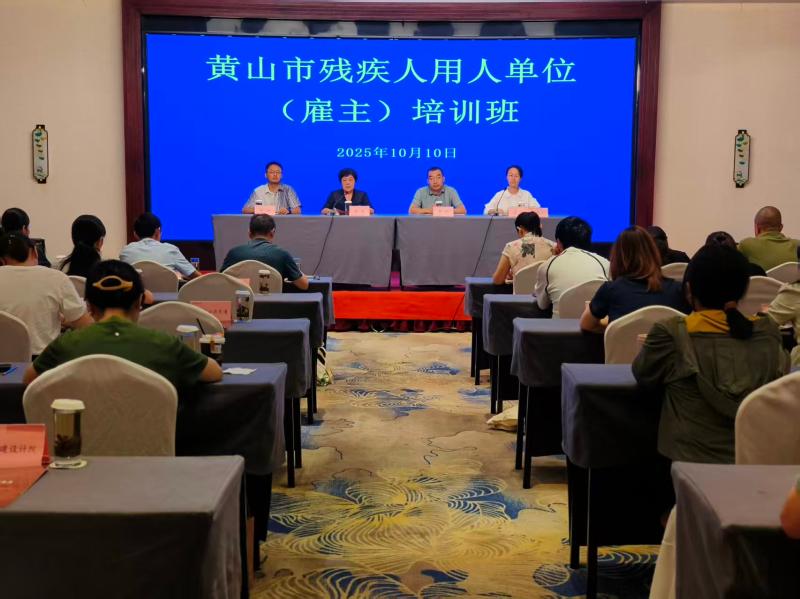 10月10日上午,市残联、市国资委联合举办2025年度黄山市残疾人用人单位(雇主)培训班,29家市属国有企业代表、14家区县企业代表及各区县残联分管领导、就业工作负责同志参加了培训,市残联党组书记、理事长孙洁作开班讲话。