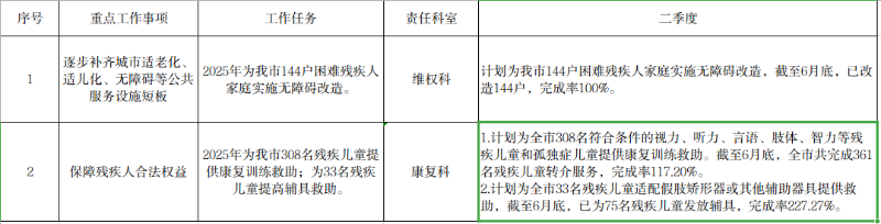 市残联2025年重点工作任务二季度完成情况