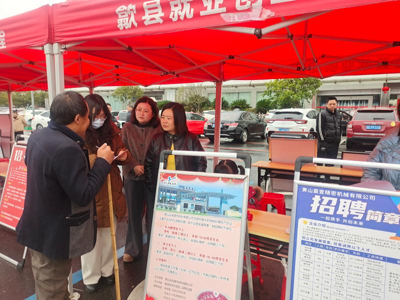 2月24日,歙县残联联合多家部门在歙县经济开发区管委会广场举办歙县2026年就业春风行动暨残疾人专场招聘会,黄山运佳公司等10多家用人单位到场参与。