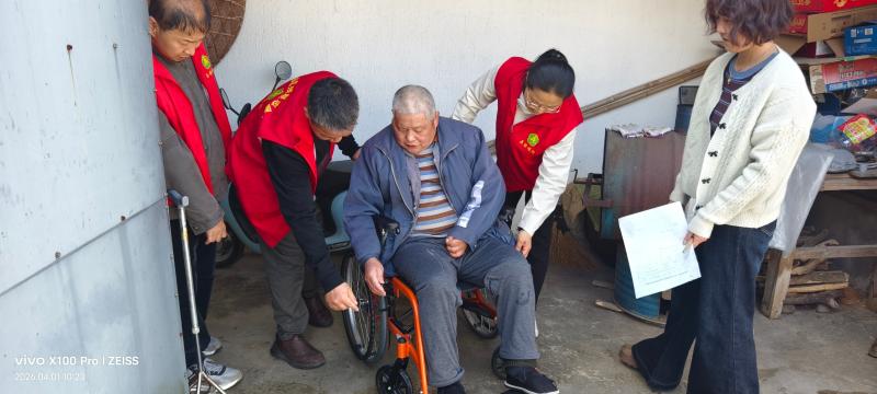 接受红色洗礼过后,全体人员走进谭家桥镇东黄山村,走访了困难残疾家庭,为两名残疾人送上轮椅、腋拐等辅具,将党和政府的关怀与温暖实实在在送到残疾群众身边。工作人员与残疾群众亲切交流,了解其生活状况和实际需求,现场进行康复训练指导,切实解决残疾群众急难愁盼问题,用实际行动践行扶残助困的使命担当。