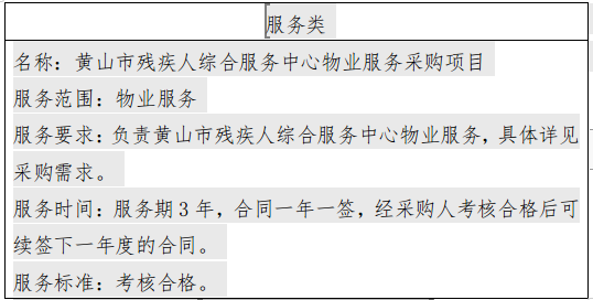 二、项目名称:黄山市残疾人综合服务中心物业服务采购项目